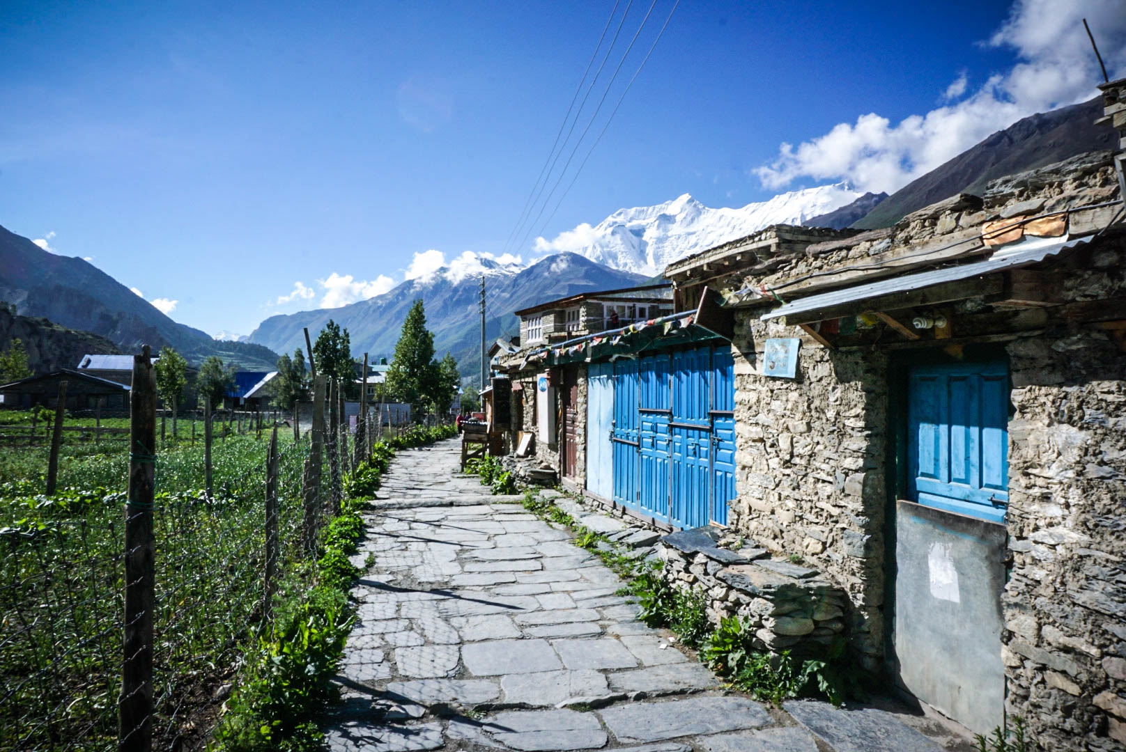 Khangsar Khola on the bridge below Khangsar and ascend the slope to the village, a village still in the old